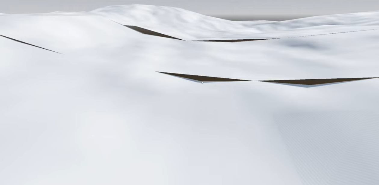 Terrain with varying LOD levels, adjacent meshes with different LOD levels picked show seams as the higher detail mesh is more subdivided, taken from this video
