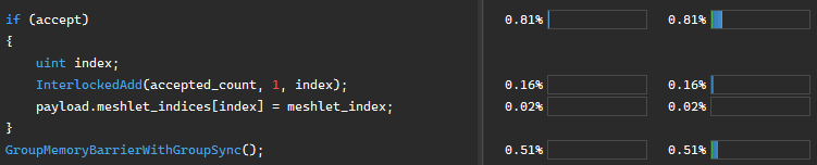 There are two conditions that have to be met, to decide if we should render our meshlet: