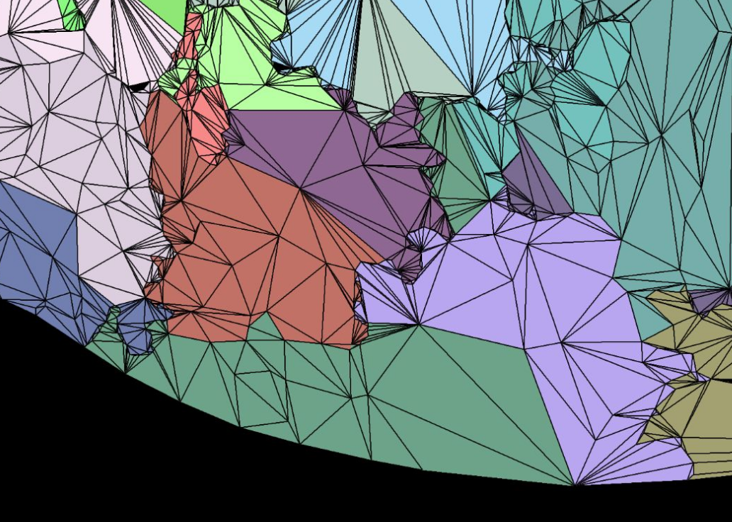 In the case of our meshes, each node in the DAG represents a group of meshlets. We begin with our original meshlets as the leaves, group adjacent meshlets together, simplify the groups by ~50%, and then split the groups back into meshlets. We repeat until we have one meshlet remaining at the root.