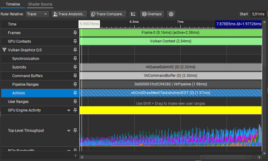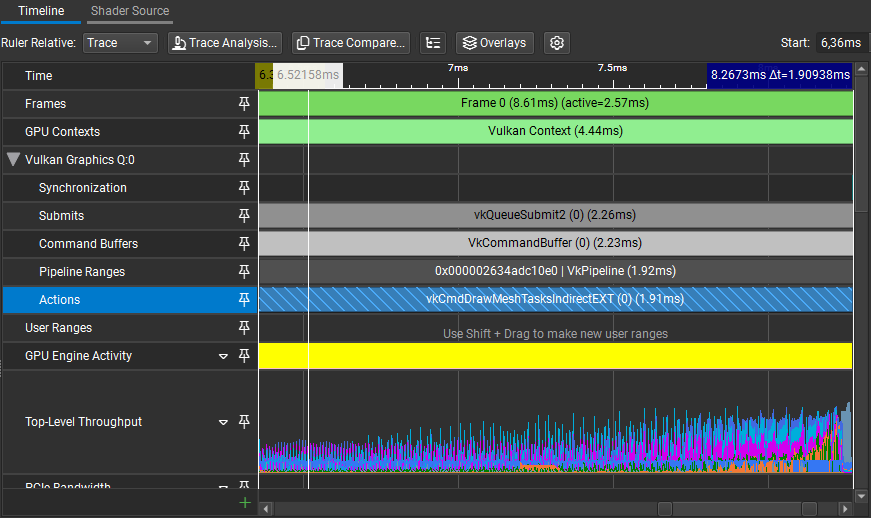 Nsight reports vkCmdDrawIndexedIndirect is taking 4.01ms to draw our bunnies: